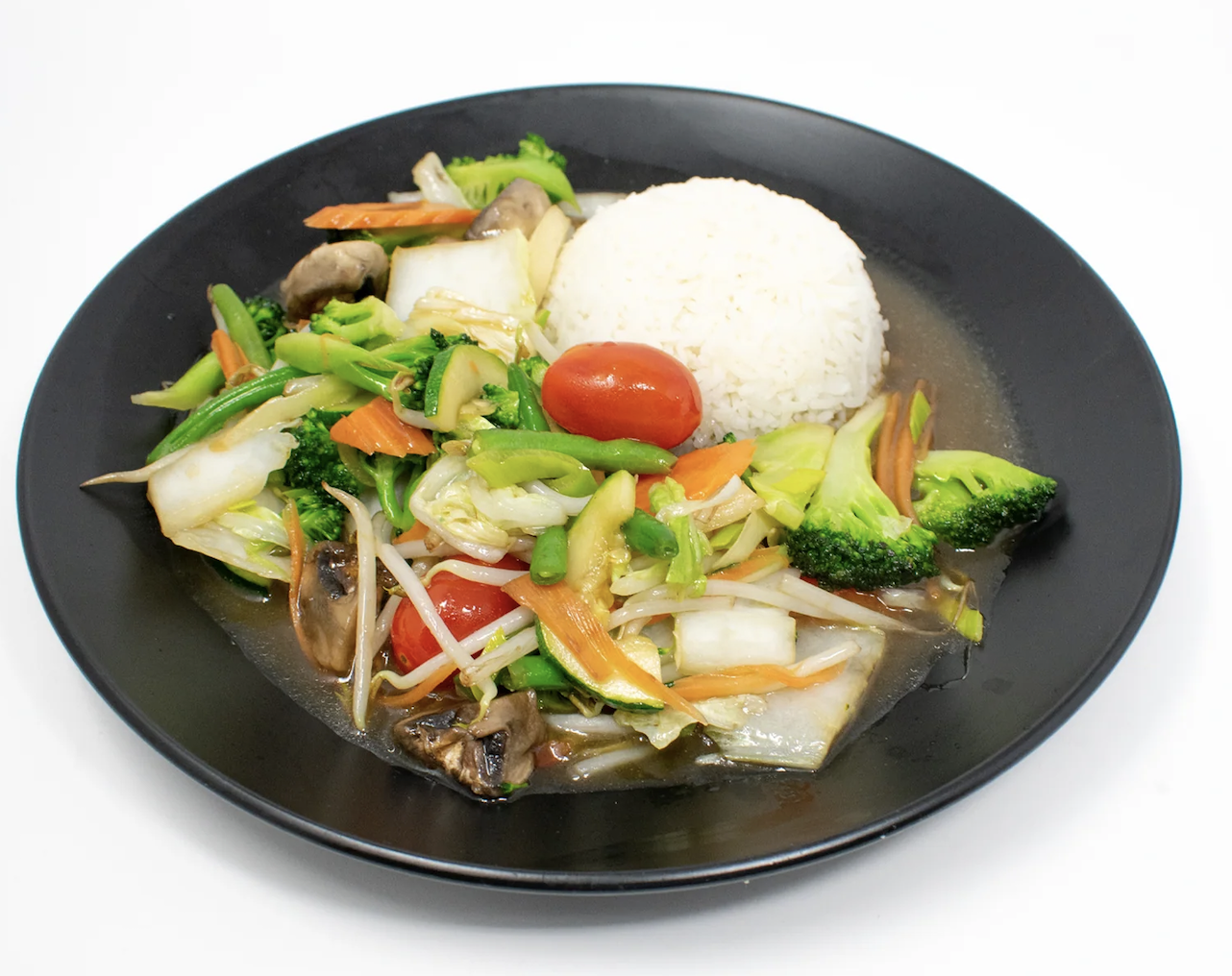 Add Veggies, Tofu, Duck, Chicken, Beef, Pork or Shrimps - served with a portion of steamed Jazmin Rice