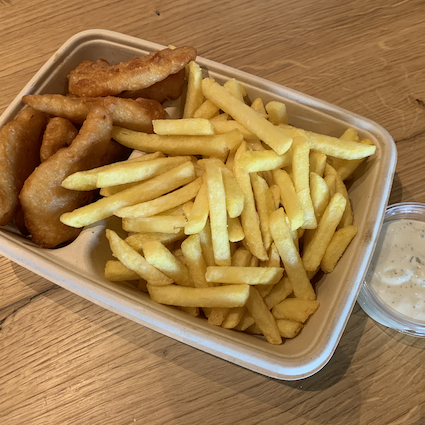 Bread filled with fried king prawns, cole slaw, crispy onions, garlic-chili mayonnaise