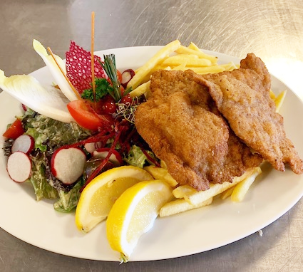Gratinated goat‘s cheese, leaf salad, toasted cashew nuts, fig, beetroot, honey