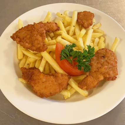 Chicken breast, lettuce, tomatoes, cumcumber, oignons, sweet chili sauce, chips