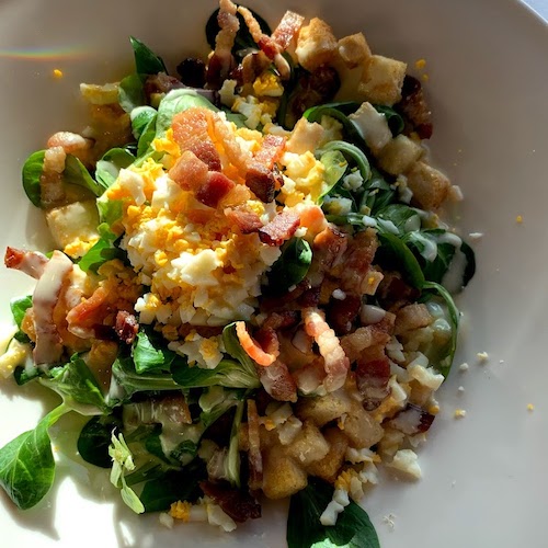 Salad of lamb's lettuce, with eggs, bacon and croutons