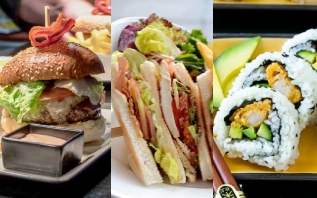 Sandwiches, Sushi, Burgers, Salads, Snacks, Pasta, Beer, Wine