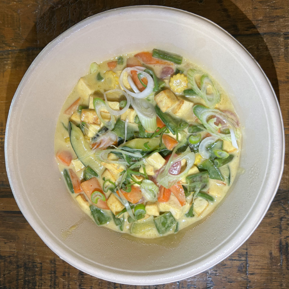 in roasted vegetable broth with sesame and soy oil (vegan)