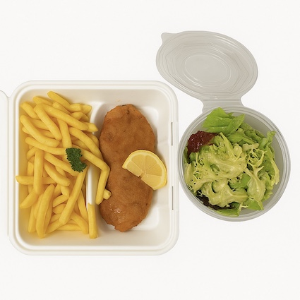 Cordon-bleu vom Schwein, Pommes frites und grüner Salat
